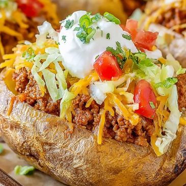1 pound Baked Potato, Butter, Taco Meat, Cheddar Cheese, Pico De Gallo
